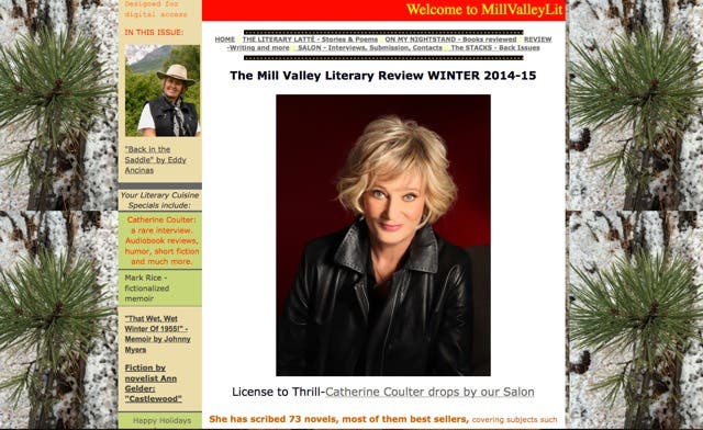 Best-selling novelist Catherine Coulter is featured in a rare interview. We present a number of fine short works by known writers such as novelist Ann Gelder, Eddy Ancinas (Squaw Valley Writers Conference Board Director), and Brit blogger Johnny Myers.