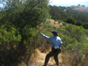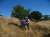 The activity at China Camp was both physical and educational in nature. Volunteers fanned out across the grassy hillsides on the southern edge of the park, above the Glenwood neighborhood of San Rafael. They were looking for young oak trees that were surrounded by protective wire fencing and marked with an ID tag. The Park Champions day project was organized by Joyce Abrams and Andy Kives of Friends of China Camp, involving a volunteer work force that came from around the Bay Area. Julia and her son Dylan came from Campbell in the South Bay. Trisha came down from Sebastopol. Other volunteers were more local, coming from San Rafael and Novato.