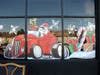 Recent examples include Santa Claus and Rudolph the Red-Nosed Reindeer riding in a classic convertible on the windows of a San Jose auto supply store, and Santa getting a beauty treatment at a Los Gatos hair salon.