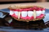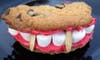 5. Carefully place the top dentures onto the bottom dentures. Add 2 slivered almonds to each pair of dentures - these are Dracula's fangs!
