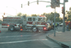 The taxi was making a right hand turn onto Santa Margarita Parkway.