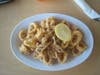 Hmmm. So I returned my attention to the menu. My daughter selected the fish taco plate, two fish tacos with a side of black beans and cilantro rice. I chose two ahi tacos with a side of cole slaw. We decided to share an appetizer of grilled calamari.