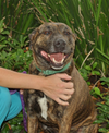 Meet Bella! She is a beautiful Brindle coated bull terrier mix that was recently surrendered to The PRC by her family. They sadly could no longer keep her, but she has adjusted quickly to life with her new friends at The PRC. She walks well on a leash and is house-trained. She would make a welcome addition to any family, and is good with kids and around other dogs. Would you be able to give Bella the new home she deserves? Come meet her today!