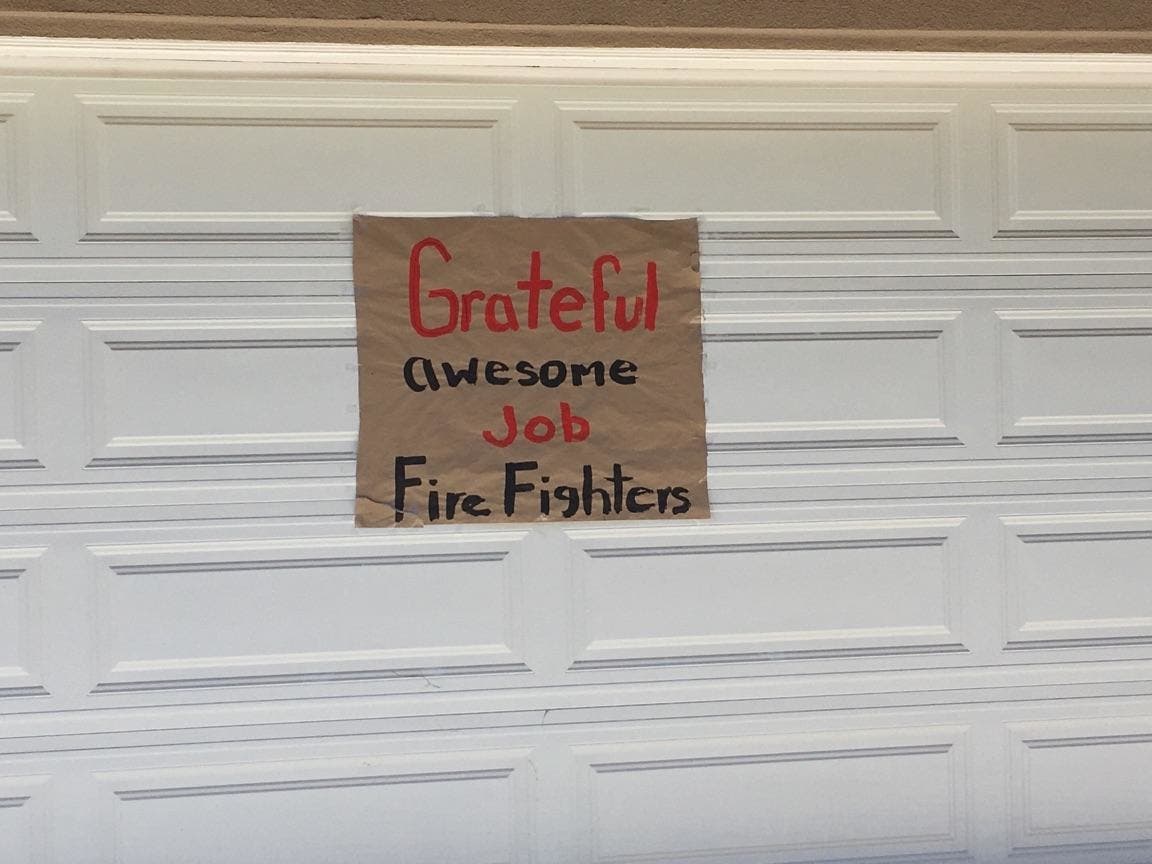 Residents who returned home thanked firefighters with garage signage and snacks, oranges and waters. Whatever they could do to show thanks for saving so many homes from damage.