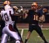 Senior quarterback Alex Bridgford barely broke a sweat before he was replaced after the first series of the third quarter. His first pass went to senior receiver D.J. Wilson for a 64-yard touchdown, and Bridgford finished 9 of 15 for 213 yards and no interceptions. Wilson caught six passes for 174 yards, a 29-yard average.