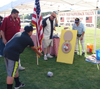 At the booth, Elks volunteers conducted spin-the-wheel and bathroom tissue toss games for the kids who earned prizes. The books, CDs, toy stuffed animals and other small prizes were donated by Bongo Inc of Lake Forest. The games were just as popular with adults who enjoyed tossing the tissue rolls. The eighteen (18) Elks volunteers also handed out American flags and Elks anti-drug literature.