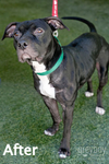 Summer is a 3-year-old, female Staffordshire terrier. It has been 3 short months since saving her from a shelter in Van Nuys, CA. The PRC caught a glimpse of her via email and spent the weekend arranging for her to travel to us. A plea had been sent out to rescue groups to try and save her from euthanasia, and because of her medical condition, a rescue was her only chance of getting out alive. Volunteers from all over OC and LA rallied to get her into our care. When she first arrived, she was terrified, shaking non-stop, and bleeding from dozens of open sores. Summer had massive hair loss and irritated skin all over her body, and it was obvious that she had been in that condition for quite some time. To make matters worse, Summer had recently had a litter of puppies, and she was still lactating the day she was dumped. A lifetime of breeding and neglect was written all over her sad eyes, but within 48 hours of being in our care, Summer had made huge changes. Immediately the excitement of being treated like a puppy took over. She must have been ignored for so long, and now she was receiving more attention than she could imagine. A skin scrape diagnosed demodex, which is a common infestation of a dog’s skin. Mites reside and feed in the hair follicles of the skin causing severe pain, irritation and hair loss. Most veterinarians believe that all dogs have small numbers of demodex mites residing in the skin and that having a few mites is normal and common. It is when immune related, nutritional or environmental stresses impact the dog that visible skin lesions from mite infestations become noticeable. Summer was definitely malnourished, and to think that she had been caring for litters of puppies in her condition was just horrifying. Lucky for her, this was a very treatable condition that just took time and patience to cure, and we were able to give her just that. In the 3 months she has been with us, she beat the demodex infection and has a new gorgeous coat. She has thoroughly enjoyed every step of her healing process, displaying nothing short of a perfect demeanor. She is gentle, forgiving, and extremely affectionate. She radiates happiness and gratitude every day. There isn’t an animal or person she hasn’t enjoyed meeting. Her tail never stops wagging and that is saying a lot for a dog that must have been very uncomfortable. Summer is a beautiful girl inside and out and truly deserves a new life with a family who loves her. We are so happy Summer found us, and it has been such a joy to rehabilitate her. She is ready to find a new home and continue her new spoiled life!