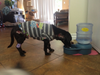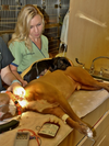 Every morning Bobby would have his bandages removed, which was his favorite part of the day. He would shake off all of the dry sugar from the day before, his ears and tail would perk up and he would take off. I always let him have “naked time” before his new bandage placement and I know he really appreciated it. He would always head outside first and enjoy the sunshine on him for a bit before making his rounds in the hospital. Usually unleashed, he would make a point to trot up to most staff members to say hello or just stare into their eyes like he did so well. He truly loved making friends. After his “naked time” it was back to treatments. Always an amazing patient, Bobby sat quietly while we would laser every wound individually and cleaned him as best we could. We treated him with a nice coat of sugar to help the wounds heal faster and a thick body wrap kept everything clean, sugared and secure, and then he would rest.