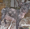 When Bobby arrived on July 15th, Dr. Wheaton and the staff at Alicia Pet Care Center started treatments right away. His wounds were cultured and then cleaned under anesthesia. A full blood panel was done and he received laser treatments and sugar-packing and bandaging all over his body. His blood work showed that he was slightly anemic, among other things, and his culture came back showing a staph infection from his wounds. We were ready to help him in every way possible and only time would tell if he would respond to treatments.