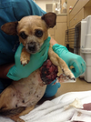 Leila: The Pet Rescue Center’s most recent medical needs patient, Leila, came to us on August 1st. Leila, a sweet, 12 lb. senior Chihuahua, was found at the bottom of an empty dumpster in Irvine, CA. As if a dumpster wasn’t bad enough, the little lady had a softball size mass in between her front legs. She was saved by a good citizen and taken to Irvine Animal Care Center for processing. According to Irvine staff, Leila was extremely sweet, but would need more medical care than they had anticipated and reached out for help. The Pet Rescue Center and Irvine Animal Care Center have worked together multiple times to assist each other with pets in need. In this particular case, Leila paved the way for us to place 3 of our harder to adopt cats with Irvine Animal Care (and all 3 have already found great homes). We were very happy to be able to take in Leila and get her feeling better as soon as possible. Her mass was horrifically large and actively bleeding, so she was taken to surgery immediately after her exam. In addition to removing the large mass, she had smaller lumps up and down her abdomen resulting in a full mastectomy. One side was removed for her first surgery. She is still healing and will need a second surgery to complete the mastectomy in the coming weeks. At that time, she will also be spayed, micro-chipped and will receive a dental cleaning with multiple extractions. Leila has completed her second week with us and she has a new outlook on life. The sweet but shy senior we met the first day, is now a bubbly, playful girl who can’t believe how light she is on her feet. It has been so endearing to watch her learn to walk without struggle. She is already so comfortable and loving with us that it is hard to think she was ever mistreated or neglected. She shows us how quickly rescue pets can forgive and move on. She is living in the present and life is presently perfect in her eyes. She holds no grudges and just wants to live every second to the fullest. Although she is pushing 8 or 9 years, she has so much life to give to someone special. We are excited to watch her progress and have no doubt that she will be ready to find a forever home very soon.