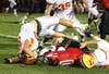 After finding Neville a drive earlier, Bridgford went back to him on second down, except this time, Redlands East Valley countered with double coverage. The deep pass was on target, but was swatted away by cornerback Stefen Kirkland and into the waiting arms of Douglass at the 10-yard line.