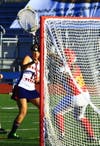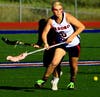 Megan Armes comes off the sidelines after being dehydrated to score the game-winning goal with 34 seconds left in her final regular-season lacrosse game for the Diablos.
