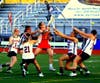 During the seven-minute halftime, Armes said she began feeling better, and by the start of the second half she was ready to go. And was she! Only 2½ minutes in, Armes drove the middle and was hit hard to the ground by Leggett. Armes took the free position shot in front of Titans goalie Alex Potts and netted a goal to tie the score. After Tesoro tied the score on a goal by Brown, Armes took the ball off the draw and ran half the field to score and tie it up again.