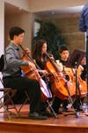 Seniors and families gathered for a tea party at the Thursday afternoon to enjoy tea, dessert and a live cello concert performed by the National Cello Institute Advanced Residency Program at the Pioneer School of Music, Co-sponsored by the Music Institute of Chicago.