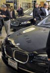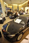 The side-by-side comparison of luxury cars came with food and entertainment in the store's showroom.