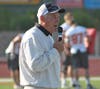 With several hundred fans looking on, Johnson emceed the event from the field, introducing players as they ran through drills, and talking about the prospects of a new season on the horizon, one that promises another gaudy win-loss record and perhaps a few more titles for Mission Viejo's storied program.