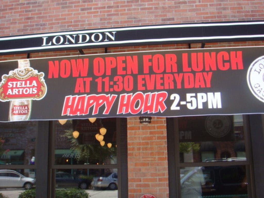 Drinks: London Gastropub’s beers include local favorites such as Craftsman and Stone Brewery, Belgian beers and Microbrews. Draft beers from $6-$8; bottled beer and cider range from $5-$25. Wines from California, Australia, and Argentina range from $7-$12/glass and $26-$54/bottle. Cocktails include specialty martinis, margaritas, and a premium selection of Scotch. Happy Hours are also popular, with specials in the $3-$5 range for drinks, and most starters and sides at half price.