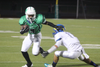At other times however Bryant looked like a true freshman, including 2 first half interceptions. The 2nd interception with under 1:30 left in the first half led to a wild sequence. Saints safety Eric Ware intercepted a pass at midfield on what appeared to be a case of miscommunication between Bryant and Gillespie. Ware returned the ball 45 yards and appeared headed for the end-zone. However the Monrovia offense-turned-defense never gave up on the play and wound up forcing a fumble at the 5 yard line which San Dimas ultimately recovered.