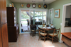 We reviewed several options for the cabinet: stained or painted wood. Custom birch wood cabinets were selected to add warmth to the room. Along the perimeter walls a light speckled Caesarstone countertop provides a durable work surface with ease of maintenance. The porcelain tile backsplash picks up the rich red/ brown tones and adds silver highlights that complement the stainless appliances. The contrasting brown/black Caesarstone on the expansive, two level island provides prep surfaces as well as an informal counter seating area. The use of 2 countertop colors adds visual interest to the space.