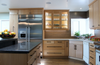 The flooring options included cork, hardwood, natural stones and porcelain tiles. Cork was their first choice for softness under foot and ease of maintenance. But we could not find the exact color that they wanted. I expanded the selections again to find something in the warm brown color that they wanted. This led us to the wood-grain porcelain floor tiles. This is a perfect foundation to compliment the warm colors of the kitchen. The low maintenance flooring is great for active families with dogs, and compliments the look of this kitchen with a modern flair.