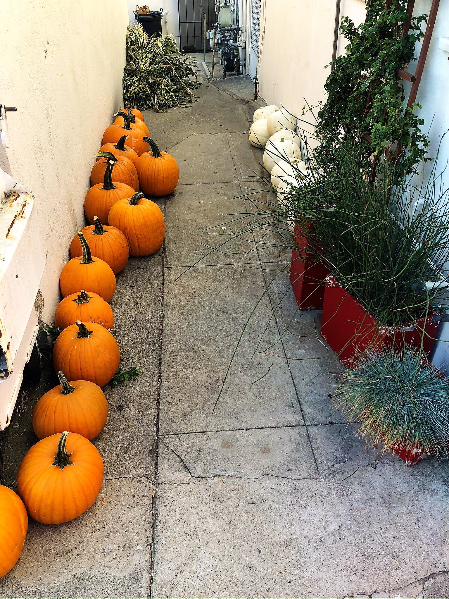 Fresh from the farm, giant pumpkins are the centerpiece for Fall vignettes throughout the Montrose Shopping Park.