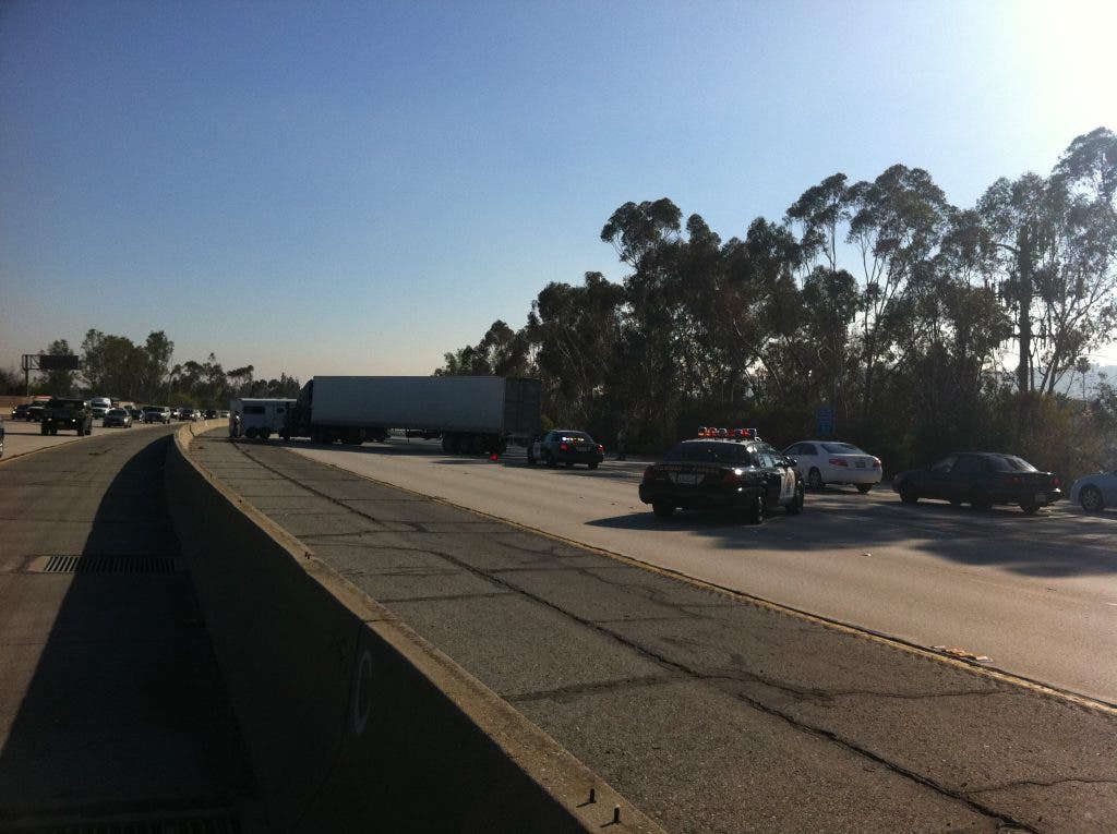 Big Rig Jackknifes, Snarls 210 Freeway Traffic