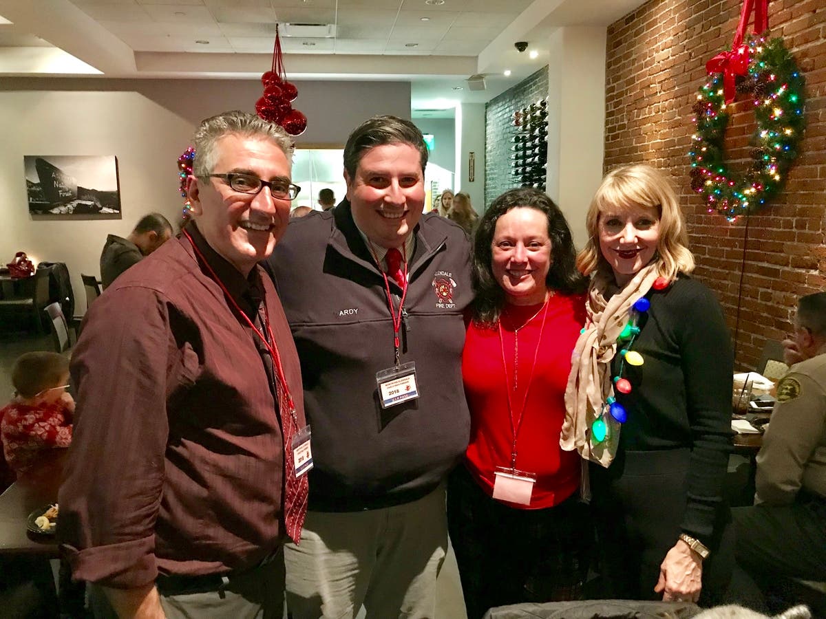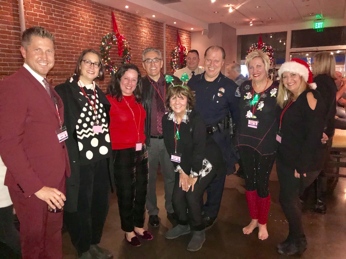 The mood was festive as community leaders prepared to ride in the 42nd Annual MONTROSE GLENDALE CHRISTMAS PARADE. It's always a great time for sharing a bite and taking photos. From left: MVCCC President Chris Charles, Ca. State Assembly Laura Friedman, MSPA Gigi Garcia, MSPA President Andre Ordubegian, Glendale City Council Paula Devine, GPD Chief Carl Povilaitis, Cal West Media Mary Dawson, and Glendale City Manager Yasmine Beers.