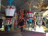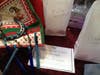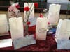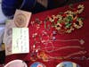 Hand towels with college prints along with Christmas-themed aprons with lace, cherries and ribbon were on sale. Ceramic bowls