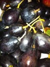 If you have only seen a typical avocado, you may not realize that these little, black, "plum like" fruits shown here are avocados too. These are a variety called a Mexicola. There is a related variety called a Mexicola Grande. And most amazing, they have an edible skin! Yes, when ripe, you can bite right into them like a plum and eat the skin and golden-green flesh inside.