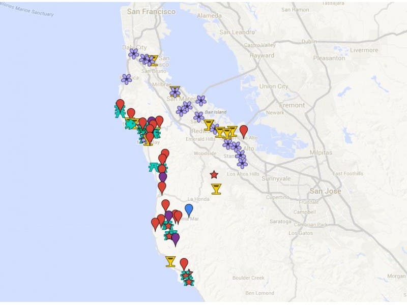 This layered, interactive map shows the locations of our farmers’ markets, as well as Pillar Point Harbor, where fish may be bought directly off the boats.
