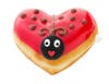 - Sprinkled Heart Doughnut-A white iced, heart-shaped doughnut with red, pink and white sprinkles.