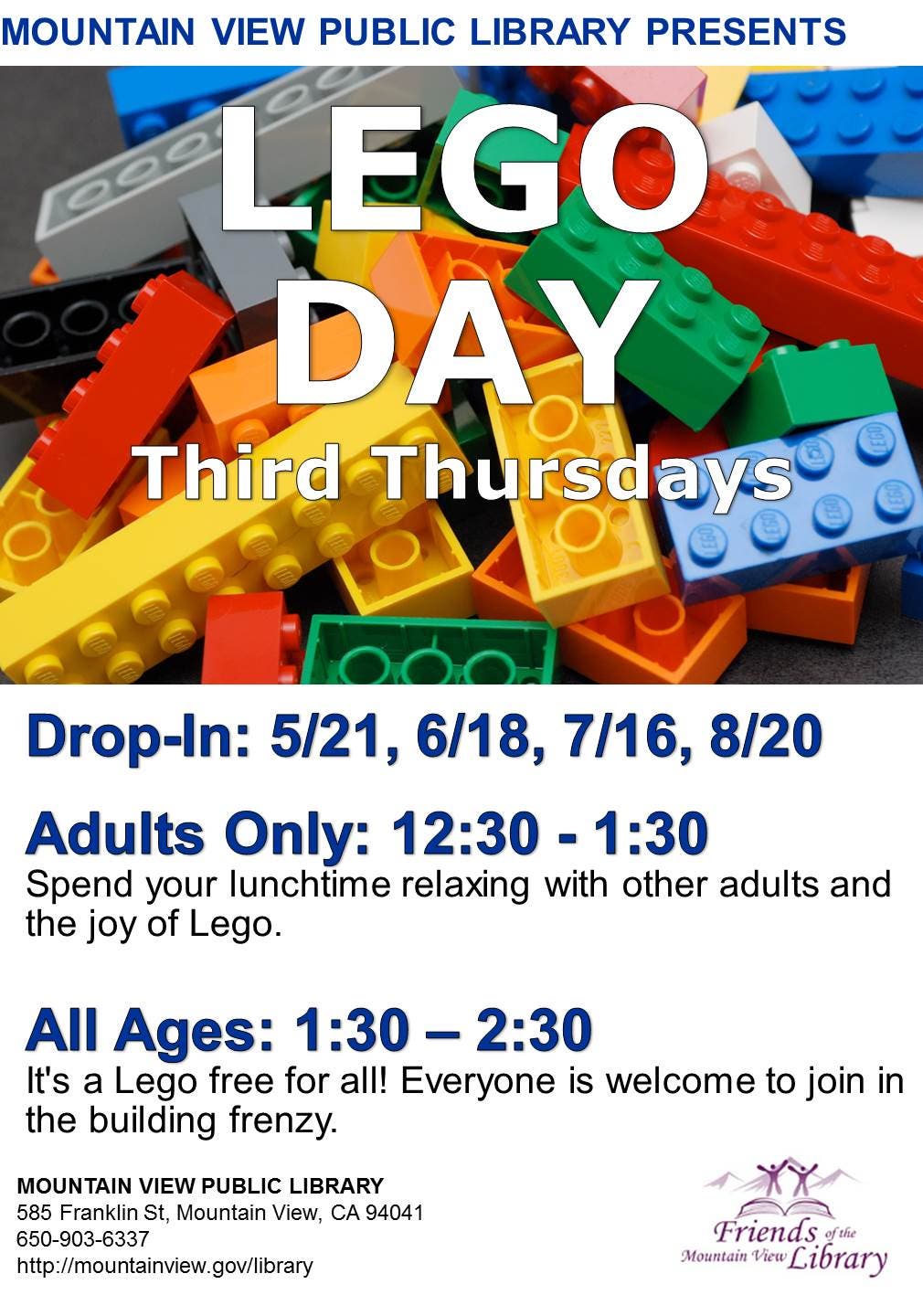 Drop-in, no registration required. The Library provides the Legos, you provide the imagination.