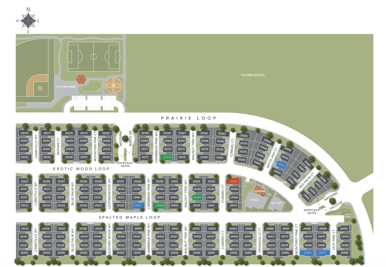 This rental home development is described as offering "worry-free maintenance, pet-friendly rental homes" on the Tricon website. The community is gated, near a park, close to Temecula, Murrieta, Lake Elsinore and offers proximity to Diamond Valley Lake and the Lake Skinner Recreation area. There is also a tot lot, pool and access to a future elementary school.