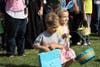 Amid the thousands of brightly-colored eggs hidden across the grass, 4-year-old Lily Komers of Murrieta was lucky enough to find one of a few prize ones. She quickly pulled her parents, Ward and Sarah Komers, along to claim her prize: a stuffed frog.