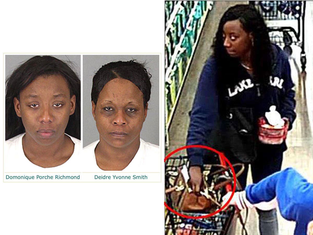 PERRIS, CA — Two convicted felons suspected of swiping a wallet from an 85-year-old woman's purse as she shopped at a Menifee store were behind bars Thursday. Domonique Porche Richmond, 26, and Deidre Yvonne Smith, 44, both of San Bernardino, were arrested Wednesday following a weeklong Riverside County sheriff's investigation and intense social media attention.
