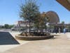 Paint in shades of brown and tan is congruent throughout all exterior walls. Copper roof accents catch the eye. Concrete that had to be torn up was replaced by decorative flagstone, and gum caked on other areas was sandblasted away. Freshly-planted trees offer shade and a stage area in the quad gives students a place to congregate for events.