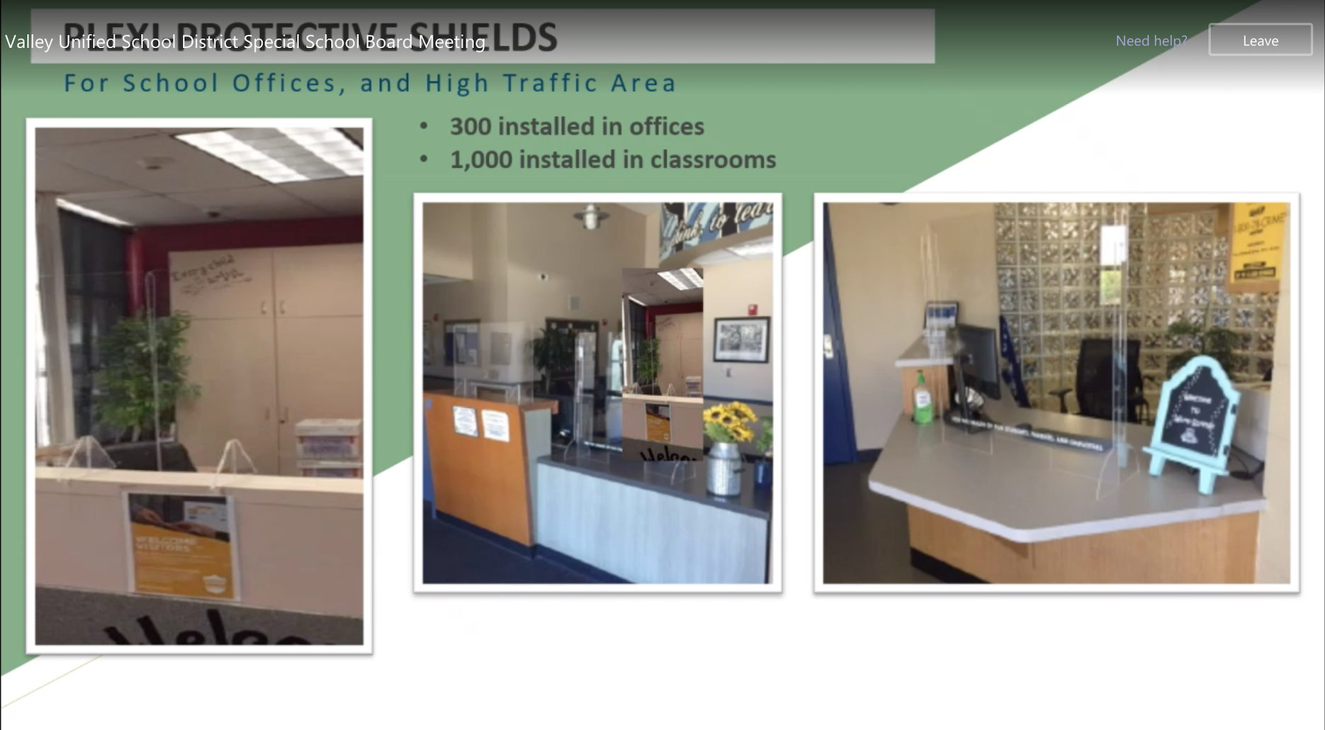 Installed in front of teacher desks and offices.