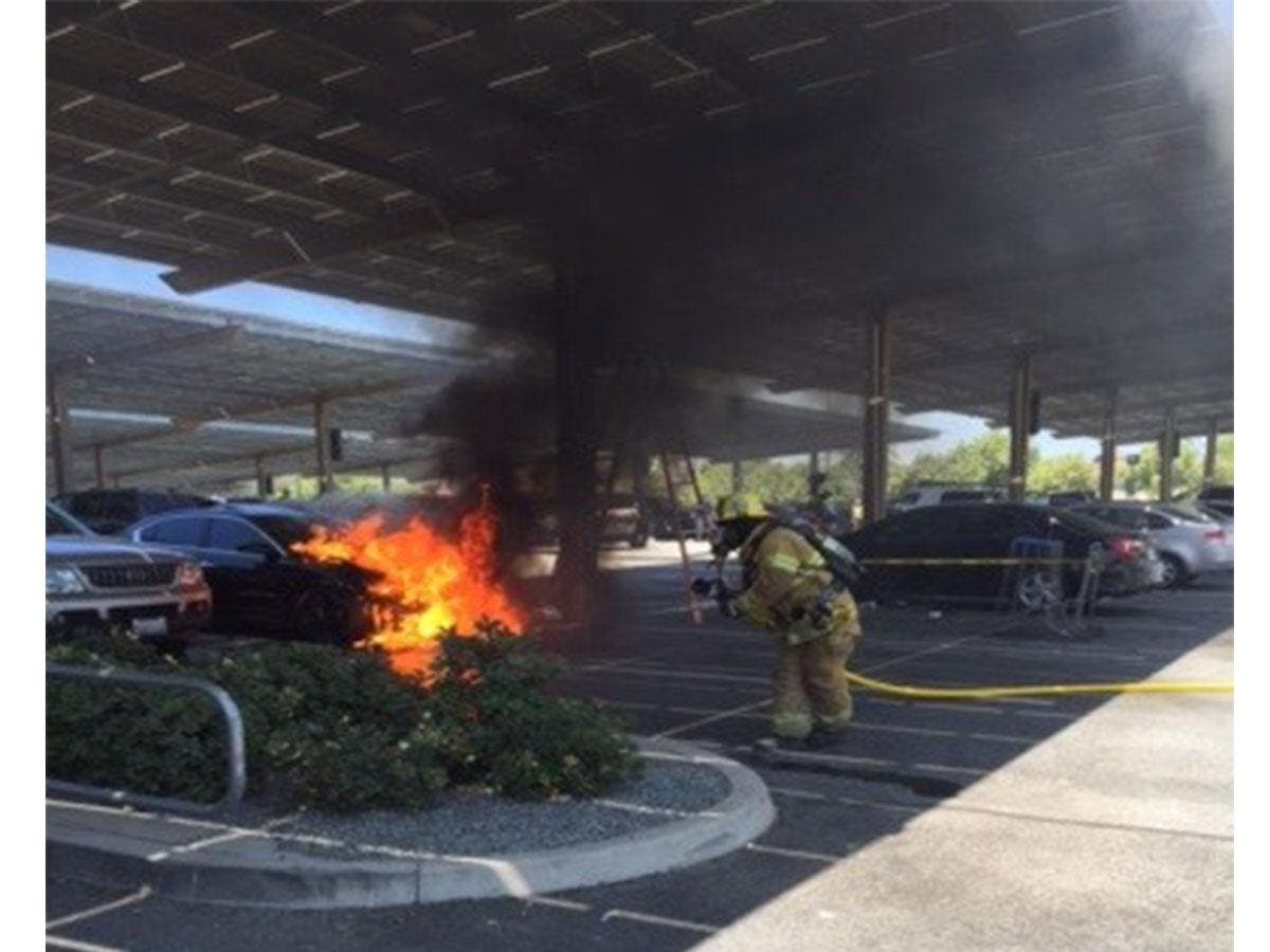 Corelli says that with this particular case, crews took special care to not damage any of the electrical components of nearby solar panels, under which the vehicle was parked.
