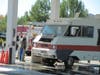 At about 11:25 a.m. Tuesday, something in the engine compartment of a 1974 Pace Arrow caught fire as the motorhome was parked at a gas pump at .