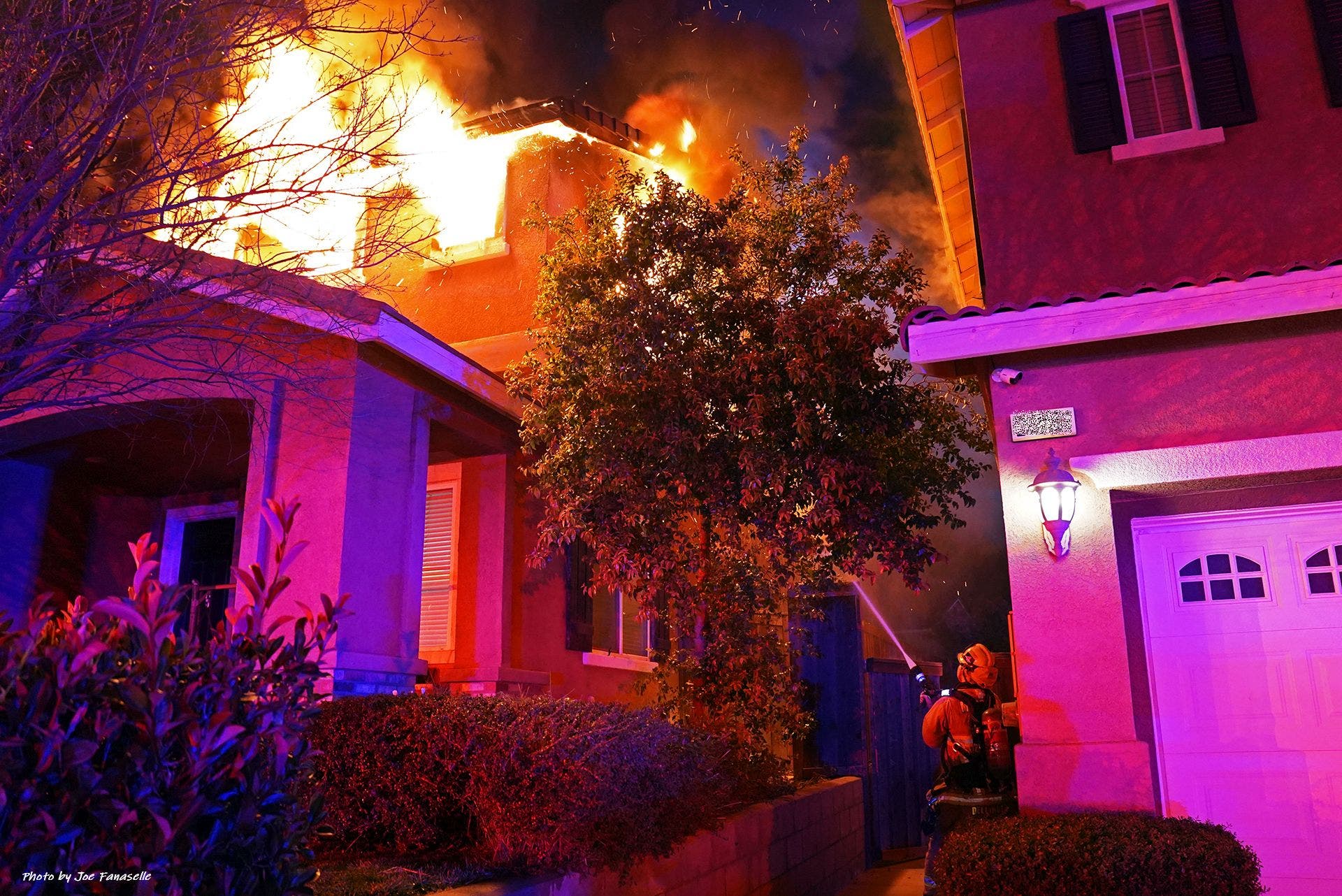 Images from the scene showed flames roaring out of upstairs windows, while smoke billowed from three sides of the home.