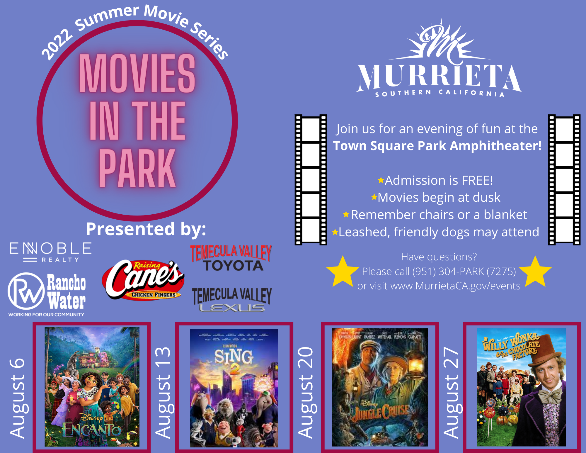 MURRIETA, CA —Murrieta is hosting its 2022 summer movies in the park throughout August, and the free screenings are all family-friendly.