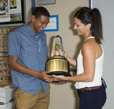 Norman has maintained a 3.41 GPA in the classroom, donated his time as a youth track instructor and volunteered locally in shoe and canned food drives for the needy. He’s also donated his time on behalf of the Special Olympics and the Susan G. Komen Race for the Cure.