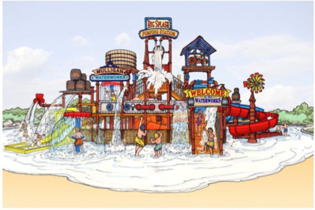 The Water Park will consist of five speed slides, multi-level platforms, interactive aquatic controls, vibrant colors, spray nozzles and a Big Splash Pumping Station.