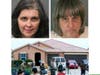 PHOTO CREDIT: Jan. 15 photo of a home where a couple was arrested after police discovered that 13 people had been held captive in filthy conditions with some shackled to beds with chains and padlocks, January 15, 2018 in Perris California. David Allen Turpin and his wife Louise Anna Turpin were charged with torture and child endangerment after a 17 year old escaped the residence and contacted the police. 12 others, ages ranging from 2 to 29, were discovered emaciated and malnourished in the home. (Photo by Sandy Huffaker/Getty Images); Booking photos via Riverside County Sheriff's Department