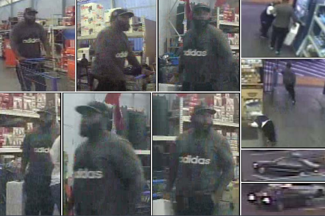 He is pictured in the surveillance images above, and is described as about 6 foot 1 inch tall, weighing approximately 220 to 240 pounds. He has black hair, brown eyes, a beard and mustache, police said.