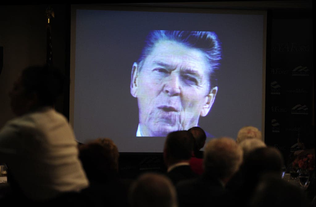 The 1,500-square-foot main house, built with stones from the site in 1996, has two bedrooms and two bathrooms. Reagan and second-wife Nancy owned the property for more than a decade before selling it. Anne Sturm of Tarbell Realtors is the listing agent.