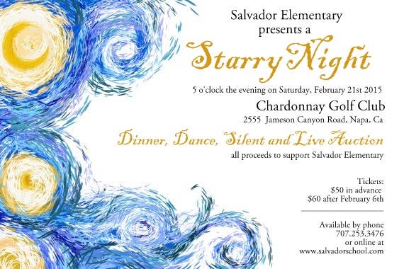 Salvador Elementary, Napa’s only arts integrated school, will celebrate “A Starry Night” at Chardonnay Golf Club February 21st, 2015 at 5pm.