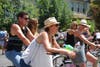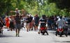 Visitors moved from venues by bikes, mopeds, skateboards, Segways, vehicles and on foot -- with one young lady cruising around on roller skates.