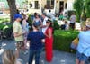 For example, the band “Change” performing on Patchett Street provided a cooler-full of ice cream and tossed paper airplanes with poems. And on Madison Street, “The Swift Band” re-located to a driveway next door to try and reduce the impact of music on a neighbor. The band also provided sandwiches and water.