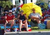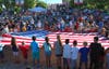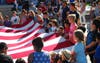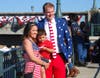 The Travis Color Guard presented the colors during the ceremonies. And Brad Wagenknecht of Napa, dressed as Uncle Sam, got several kids in the audience to help spread out a large American flag without letting it touch the ground.